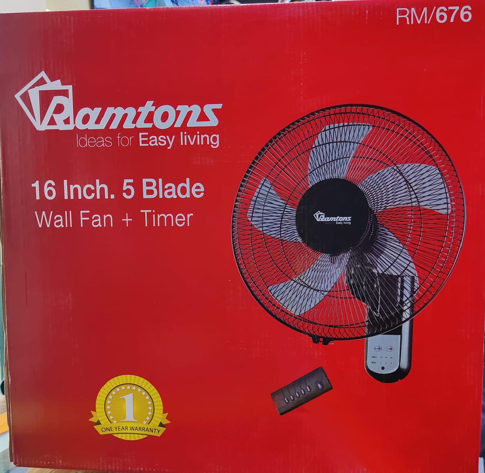 High Quality Affordable RM/676 Ramtons 16 Inches Wall Fan 5 Blades with Remote