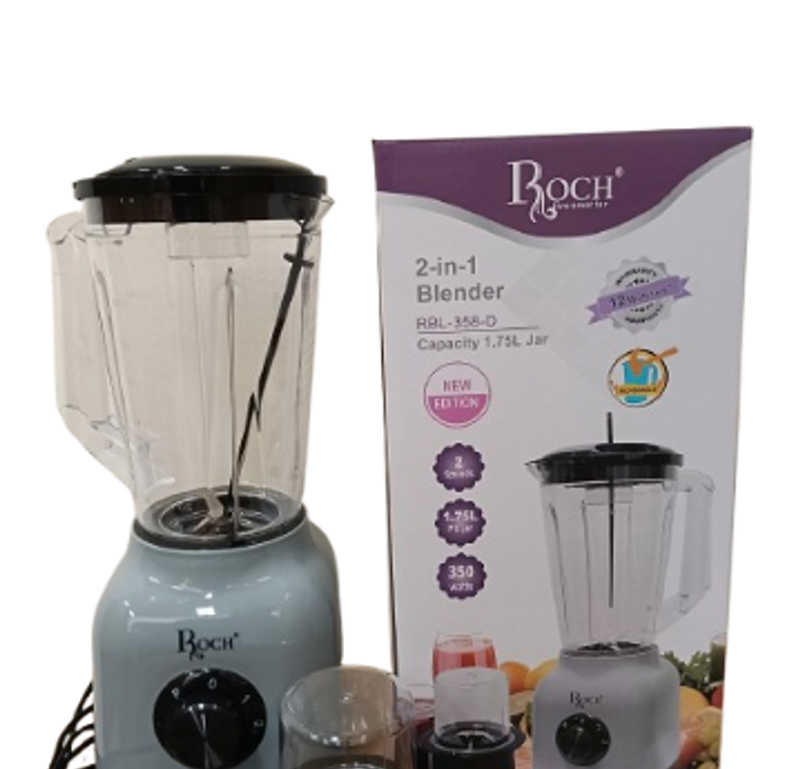- 2-in-1 Functionality: Comes with a main blender jar and a grinder for spices, coffee beans, and dry ingredients. 1.5L PC Jar: Durable, unbreakable polycarbonate jar ideal for smoothies, soups, sauces, and more. 350 Watts Power: Strong motor for fast and smooth blending results.