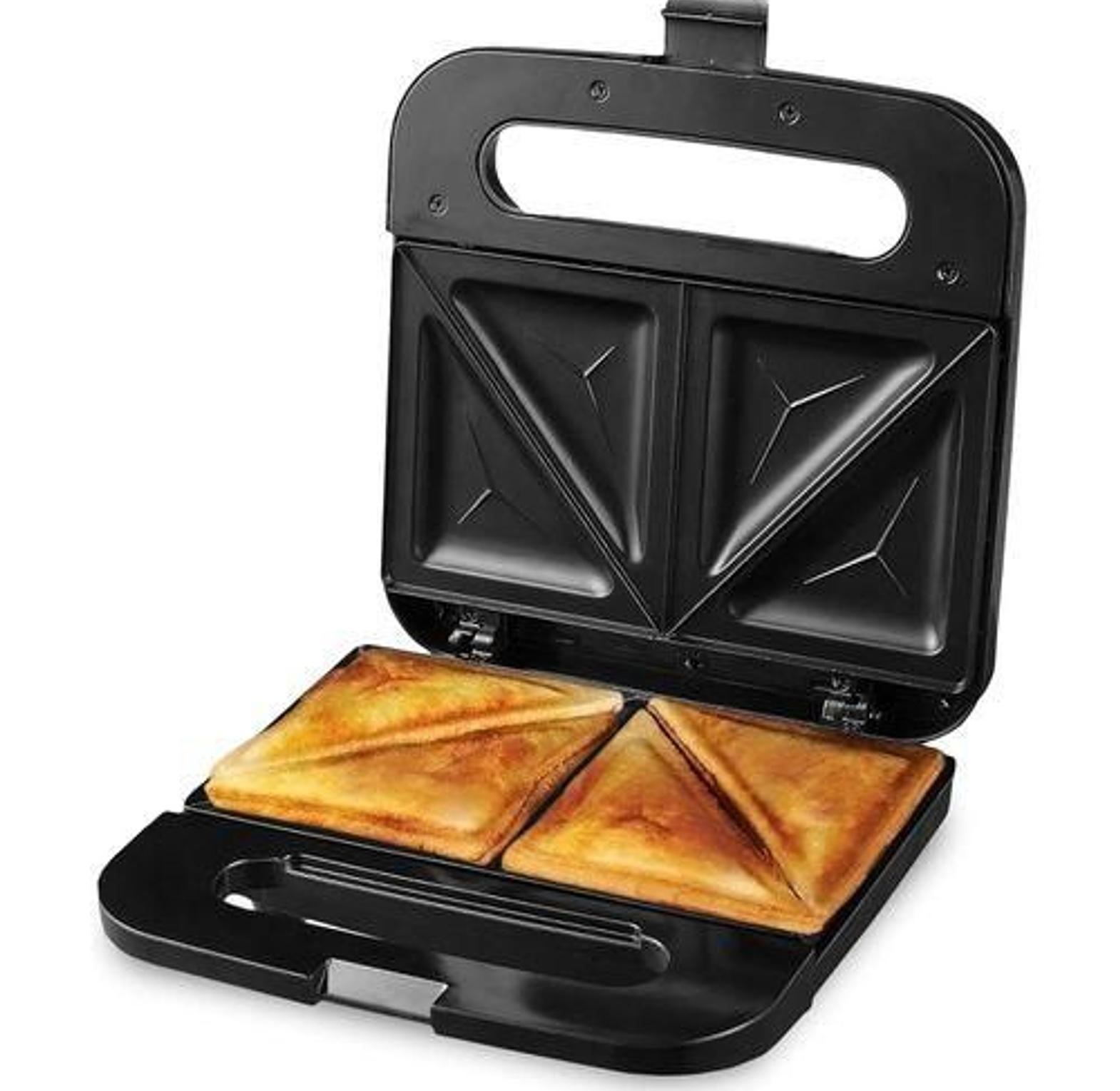 Non-stick coated plates for easy cooking and cleaning. Cool-touch handle. Power on and ready light indicators. Compact design for space-saving and easy storage, including a cord wrap design. Suitable for preparing breakfast, snacks, grilled cheese, tuna melts, and other quick meals