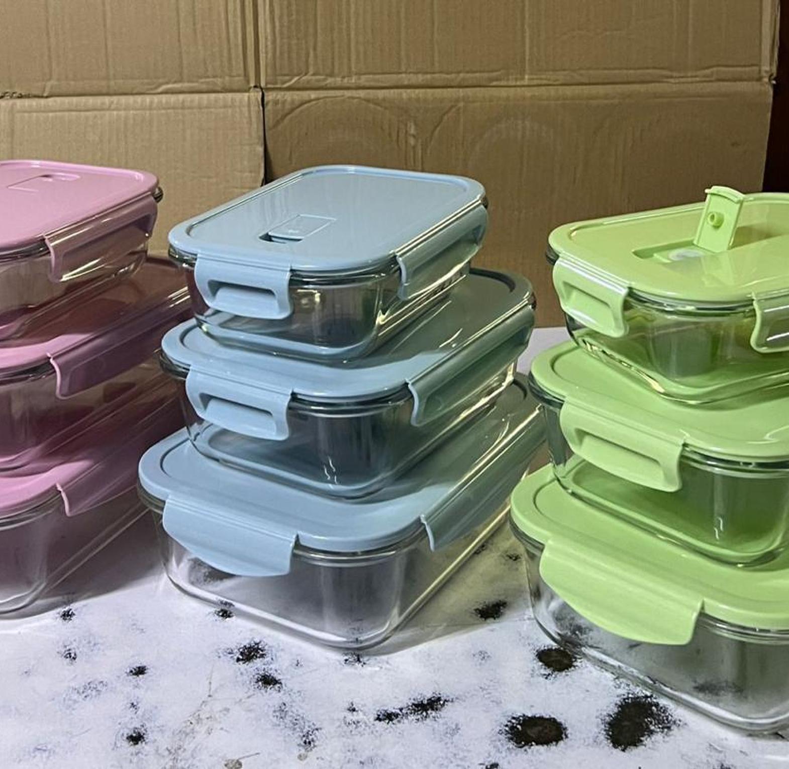 3 Pcs Borosilicate Glass Storage Bowl With Plastic Lids