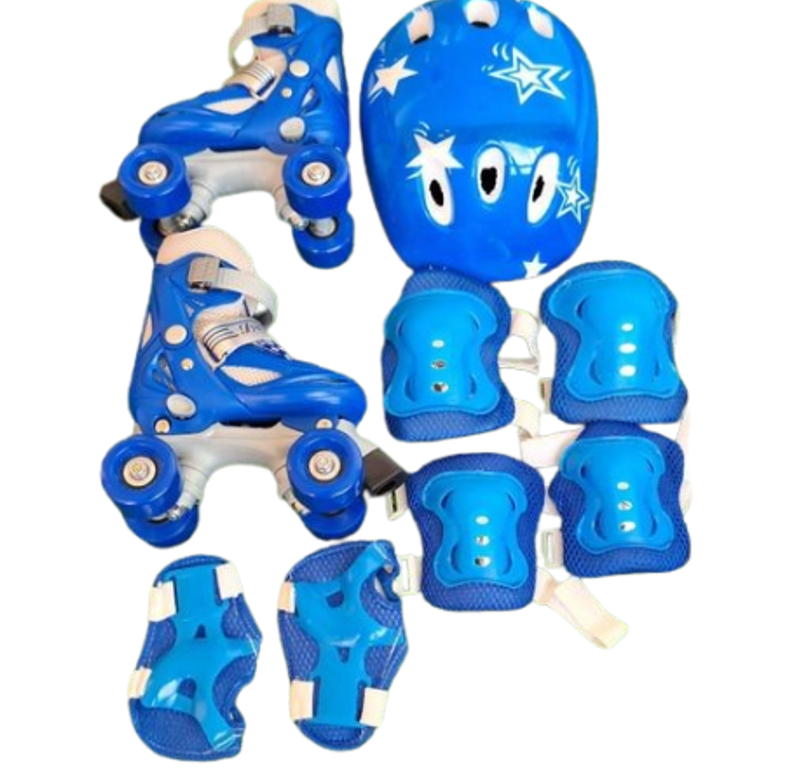 Let your child roll into fun and fitness with this premium 4-wheel skates full set – perfect for beginners and seasoned skaters alike. This adjustable roller skate set fits sizes 26 to 38, growing with your child to save you money over time. The full combo includes a durable pair of skates, safety helmet, elbow and knee pads, and a carry bag, offering everything your child needs to skate safely and confidently. Designed for Kenyan outdoor surfaces, the skates feature shock-absorbing PU wheels, ABEC-7 bearings, and a secure locking system for added balance and comfort. Ideal for both boys and girls, this is the perfect birthday or holiday gift that encourages outdoor activity and boosts coordination