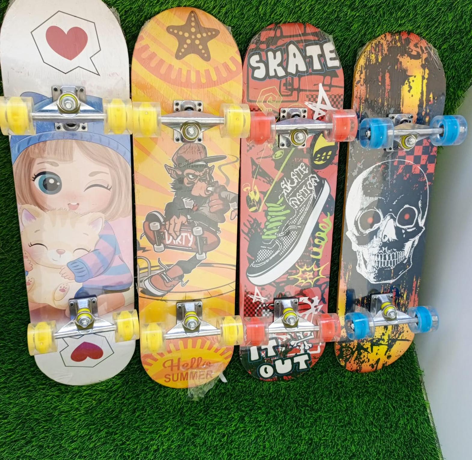 Smooth and Attractive Riding Experience: Our skateboard features a 17-inch long and 5-inch wide wooden deck that provides a smooth and enjoyable riding experience. The wood construction ensures durability and flexibility, allowing for easy maneuverability and comfortable rides. High-Precision Ball Bearings: Equipped with high-precision ball bearings, this skateboard offers excellent performance and smoothness. The bearings reduce friction and enable effortless gliding, making it ideal for both beginners and experienced riders. Polyurethane Wheels for Comfortable Rides: The skateboard's wheels are made of Polyurethane material, known for its durability and shock-absorbing properties. With a 2.5-inch diameter, these wheels offer a balance between stability and agility, ensuring comfortable rides on various terrains. Unique and Attractive Design: Stand out from the crowd with our skateboard's eye-catching design. It features pure colors on the surface and captivating 3D printings on the top and bottom. The graphics are visually appealing, allowing you to showcase your style and personality while riding. Perfect for Beginners and Affordable: This skateboard is an excellent choice for beginners looking to enter the world of skateboarding. It is designed to be user-friendly, providing stability and control to help new riders build their skills. Additionally, it is available at an entry-level price, offering great value for those starting their skateboarding journey.