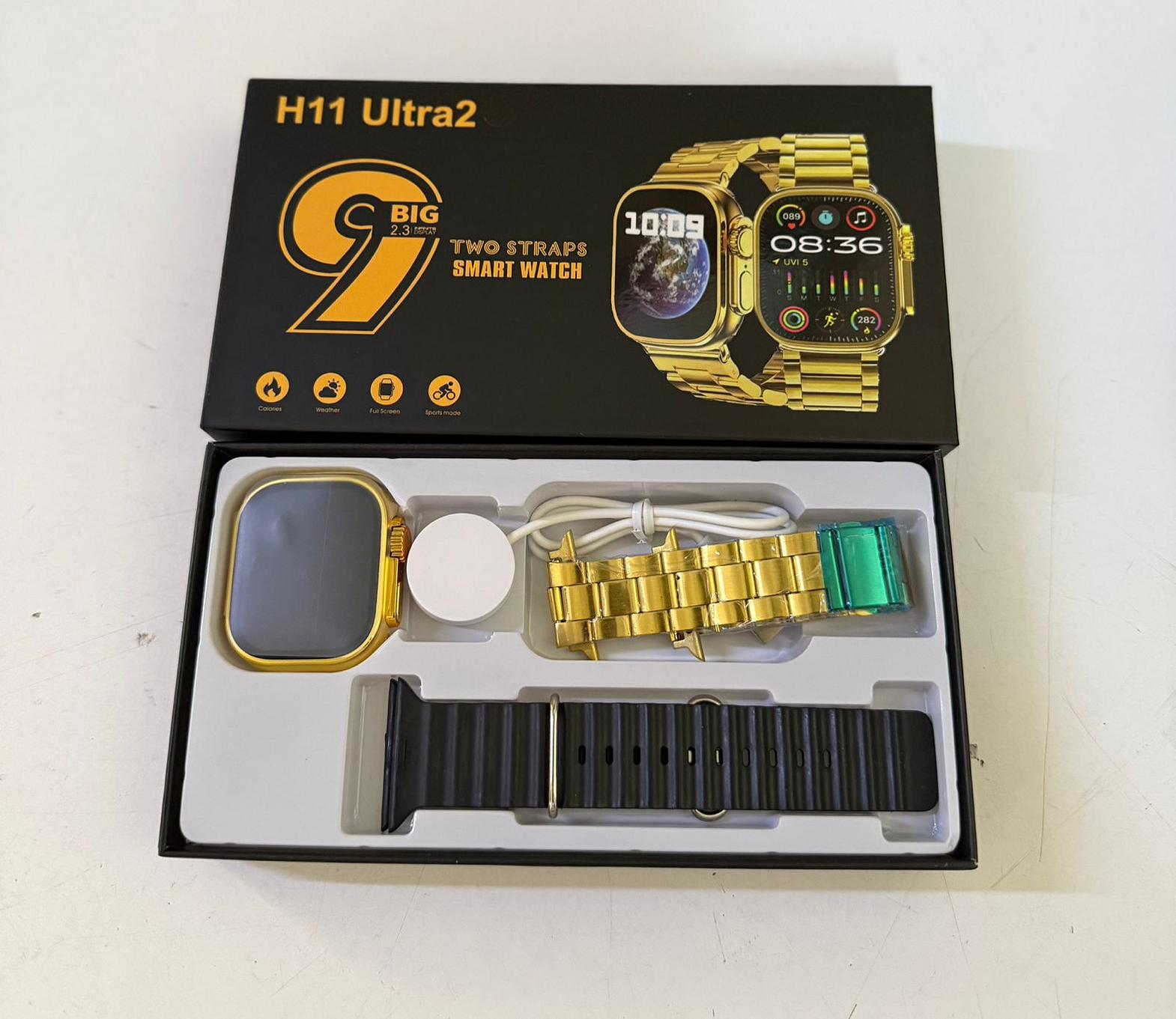 The H11 Ultra2 is a smartwatch designed to combine style and functionality, often featuring a large, high-definition display (around 2.02-2.3 inches) and mimicking the design of premium brands. It comes with two straps, typically a metal link bracelet and a silicone strap, offering versatility for different occasions and activities.