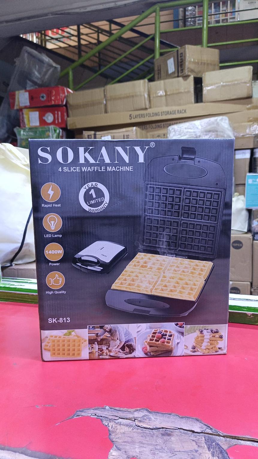 This appliance is designed for making up to four fluffy, golden-brown waffles at a time. It features non-stick coated plates for easy release and cleaning, as well as power and ready indicator lights for convenient use. The design includes a cool-touch handle and a locking latch for safety during operation and storage.