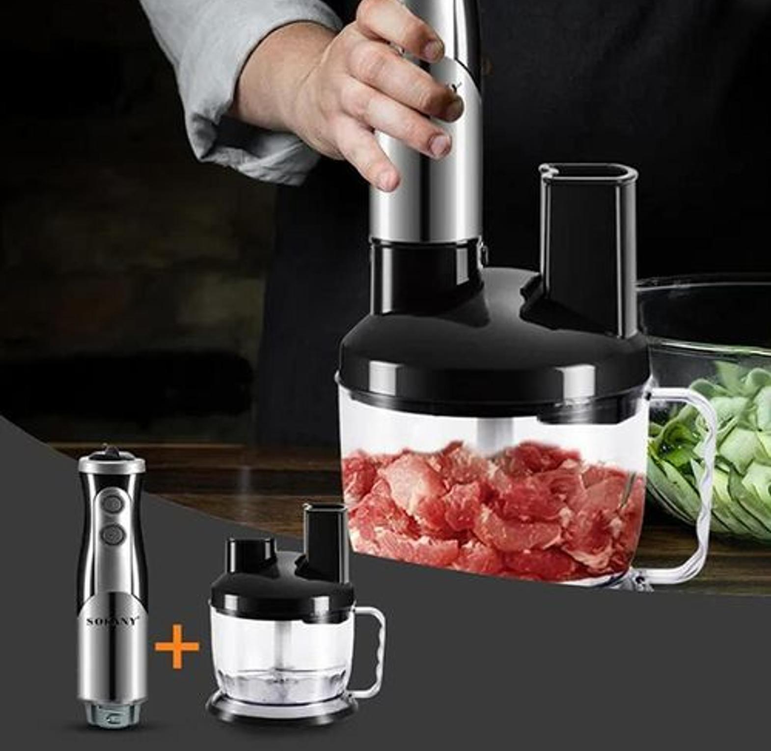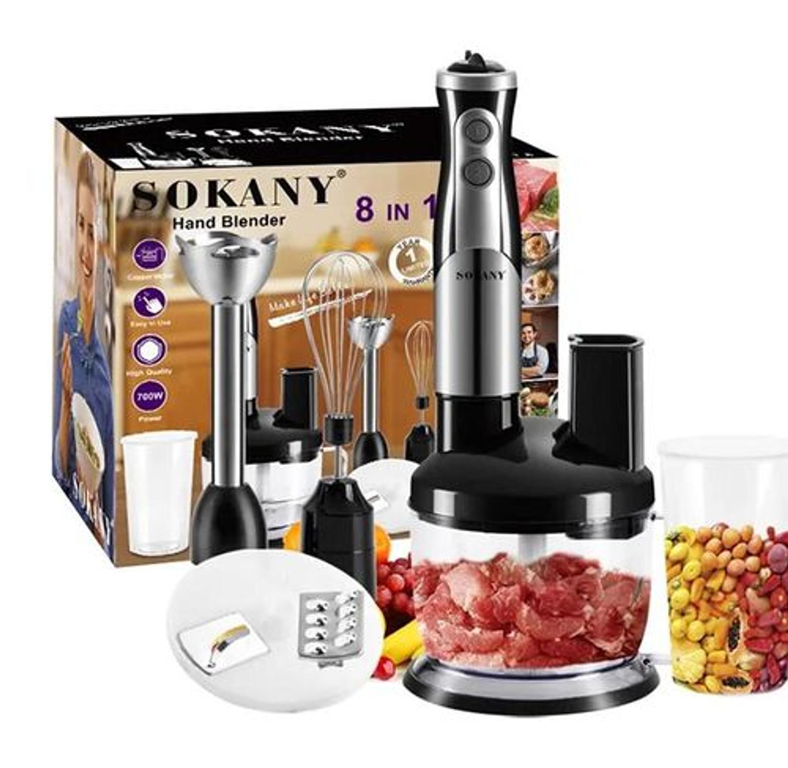 The SOKANY hand blender set has a powerful 700W motor that makes delicious and healthy smoothies, pureed soups, sauces, juices and more. mixes ingredients quickly and flawlessly to prepare. Designed with an ergonomic, non-slip and easy-to-grip handle, the Sokany hand blender set also has a safety cap to prevent water from splashing. This hand blender set is designed with two speed settings for different ingredients and accessories. Cleaning and maintaining the hand blender set is simple and easy. Its small size makes it highly efficient and convenient for everyday kitchen tasks. Features: Brand: SOKANY Model: SK-5011-8 Power: 700W Voltage: 220-240V Frequency: 50/60 Hz Material: Stainless steel Number of speed settings: 2 Container volume: 0.7 L Chopper capacity: 900 ml The package includes: 1 x Blender set 1 x Instruction manual