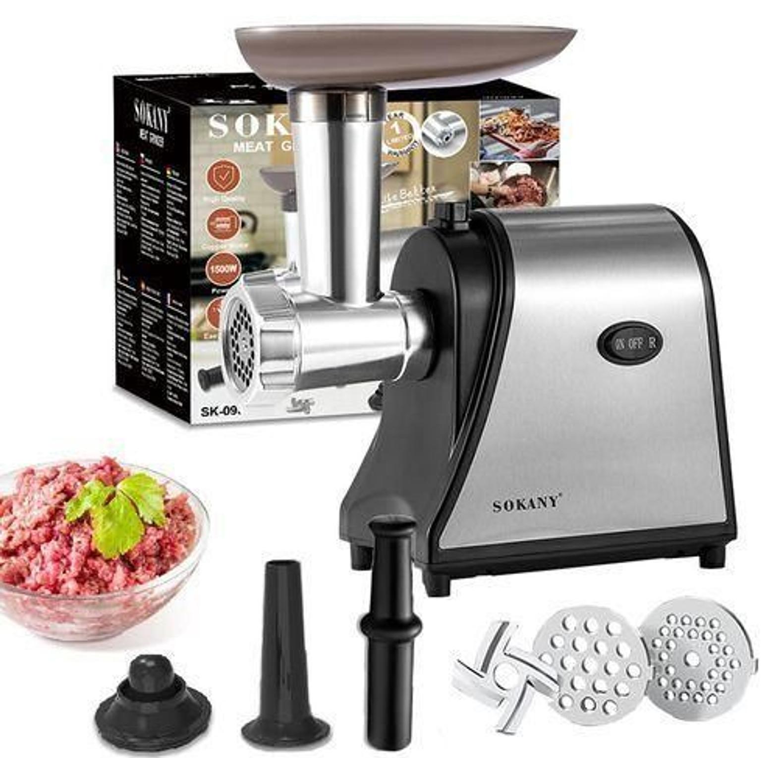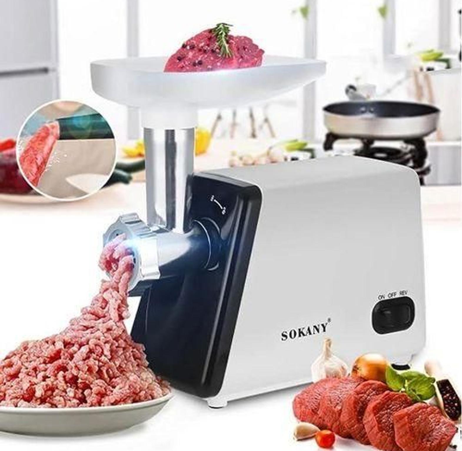 Electric Commercial Meat Mincer A meat mincer or meat grinder is a butchery and kitchen appliance used for fine chopping (mincing) or mixing of raw or cooked meat, fish, vegetables or similar foods. It replaces tools like mincing knife for example, which has been used to produce minced meat, filling etc. The screw conveyor that can be powered by electricity motors or by a hand wheel squashes and partially mixes the food. At the end of the screw conveyor is a knife installed directly in the front of the fixed hole plate. At this opening the minced meat comes out of the machine. The fineness of the meat depends on the size of the plate holes. Order this on Vicmer Store and get it delivered right at your doorstep Chopping meat is easier with the Sokany Stainless Steel Electric Meat Grinder. The meat mincer is equipped with a metal hopper plate that holds the meat pieces. It includes two exchangeable cutting blades for mincing the meat as desired. The blades are made from stainless steel that ensures efficient chopping. You can stop the mincing process with the reverse function and pull the meat backward for precise cutting. It is a low-noise mincer that creates the least disturbance. Thanks to the user-friendly design, the Sokany meat grinder is easy to clean. It is constructed from high-grade materials for durability and reliability. Quality Construction The meat mincer is made from high-grade materials for enhanced strength and durability. The stainless steel blades are food safe and ensure reliability.