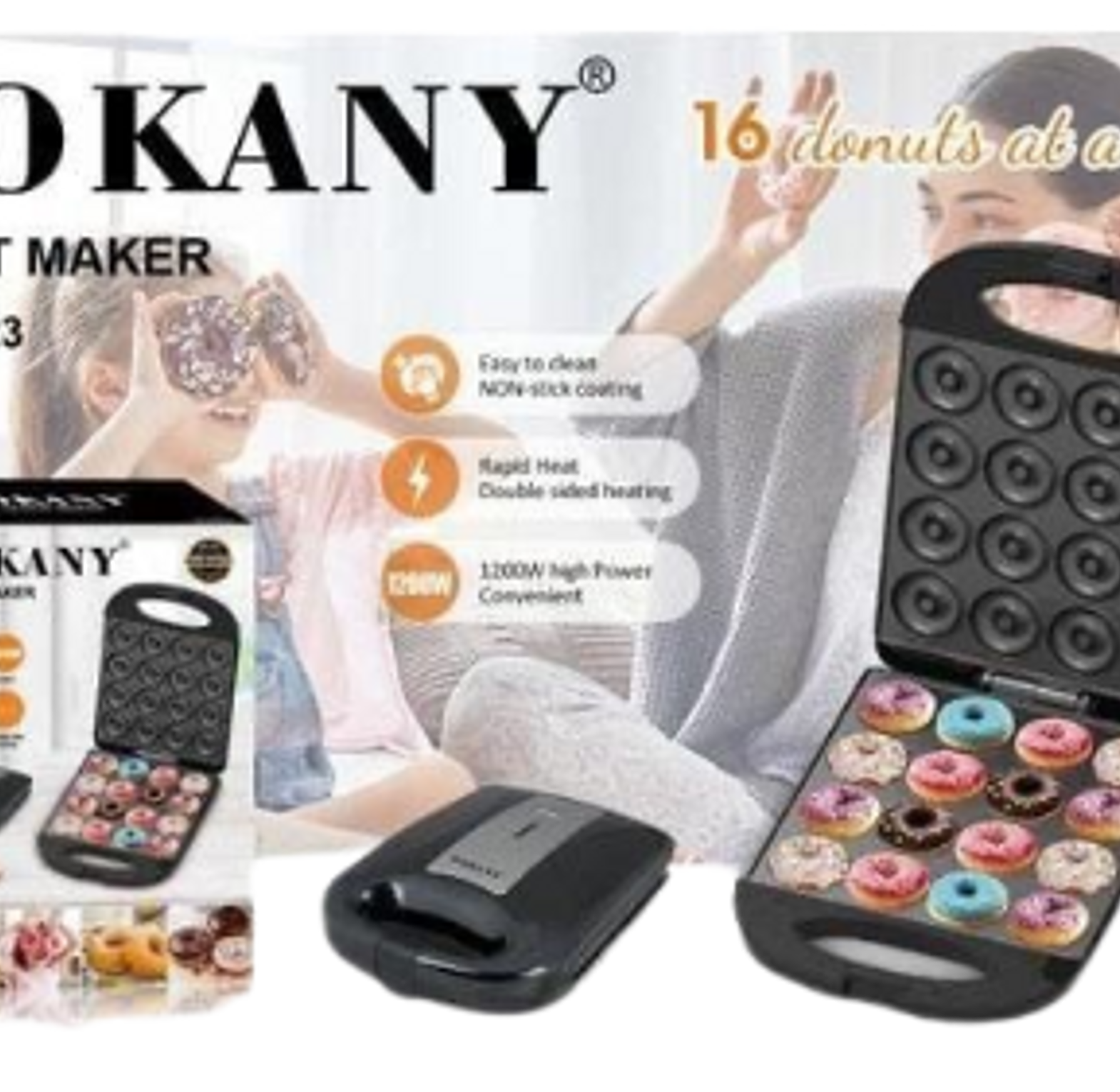 Non-stick coated heating surface Wind-up power cord Thermostatically controlled Heating element 220-240V ergonomically designed 7 mouth watering donuts in minutes FAST: Ultra-fast heat up. Get cooking rather than waiting around the kitchen! POWERFUL: Power and ready light indicators so you know when it's time to get baking. TEMPERATURE CONTROL: Automatic temperature control to ensure perfect donuts every time! SAFE: Cool touch handle. Enjoy making healthy fat free doughnuts without a hustle! Donut MachineNon-stick coated plateHeat insulated handle2 control lights for power and HeatingHigh stability through rubbrized feetOverheating protection This new Doughnut Maker (12 Pieces) comes equipped with the right tools of temperature regulation to ensure a good and easy time in the kitchen. This new design promotes a sense of style and elegance in the kitchen while does the job fast. it is coated with a non-stick ceramic coating that ensures round and smooth textured doughnuts and prevent overheating leading to a properly cooked delicacy. Order for this item online and have it delivered to you right to your doorstep