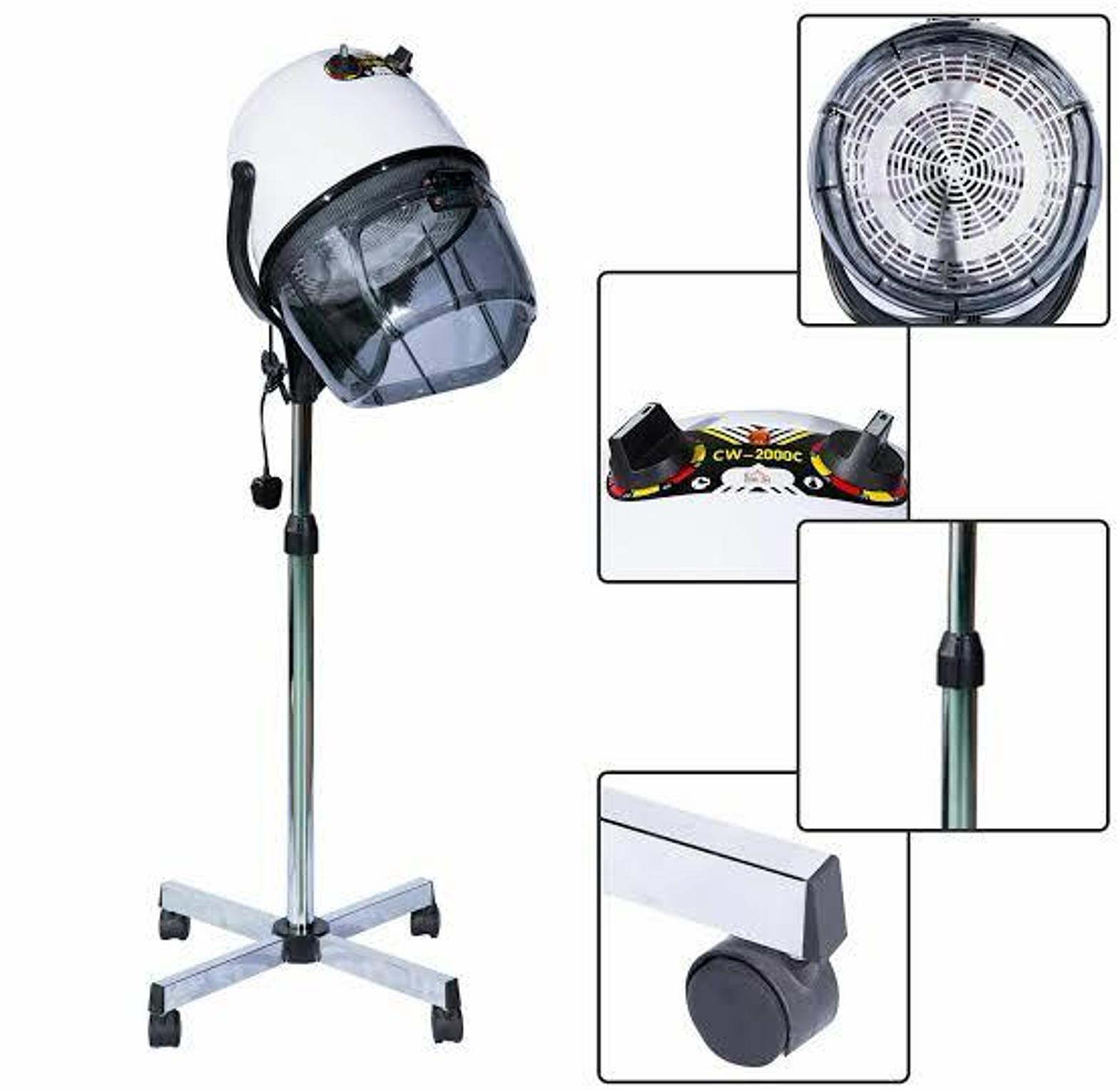 Durable standing hair dryer holder with adjustable height and clamp design for hands-free drying.