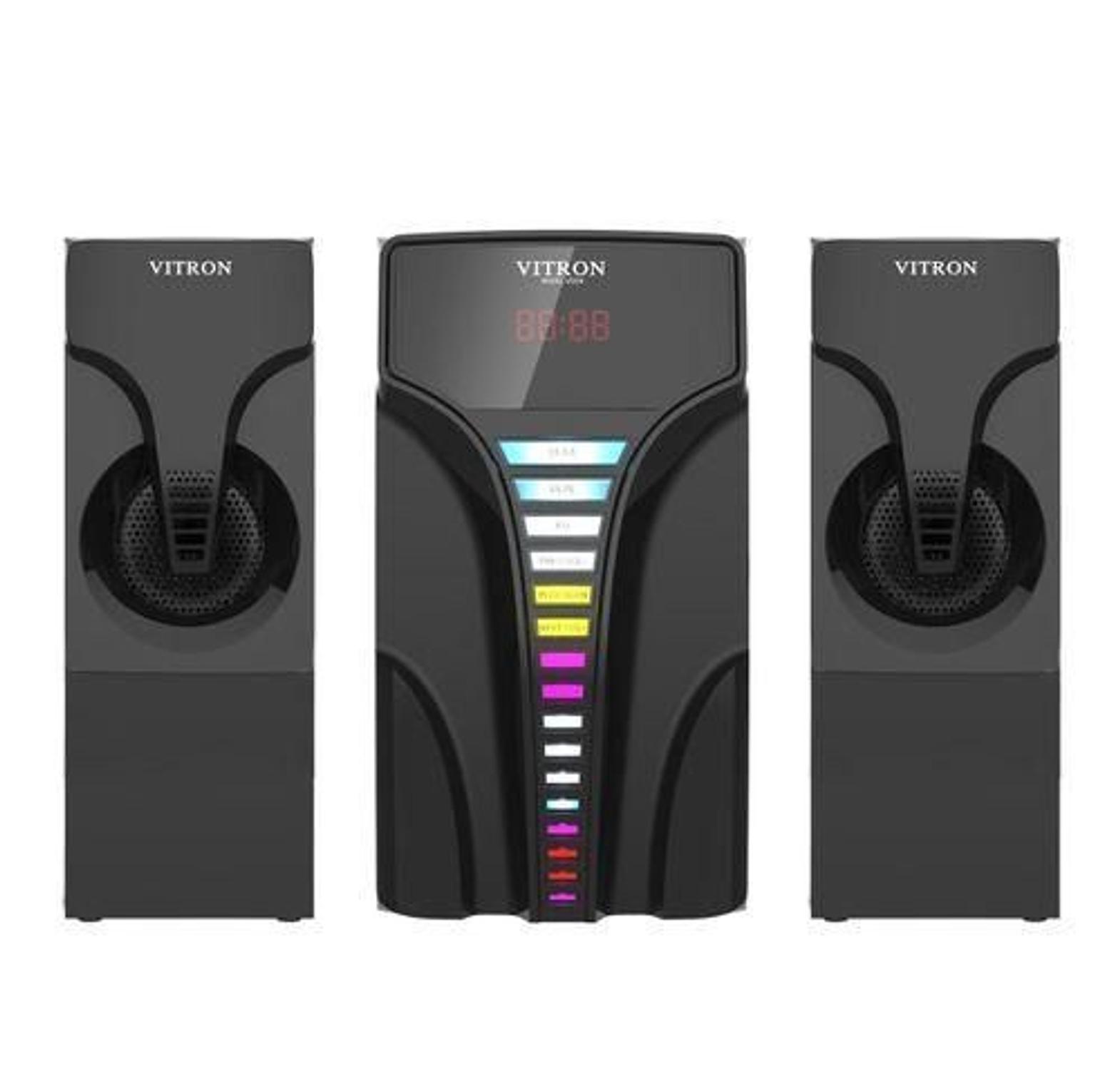 Vitron audio delivers the wides range of options in home theatre entertainment systems. Our systems feature a seamless design with powerful full-range drivers to deliver powerful, clear 360° stereo sound with deep bass. Extra wired subwoofer pumping out ground-shaking bass for immersive home theatre experience at home. The Bluetooth speaker system plays FM radio, and MP3 from the USB and SD card slots. Delivering intuitive sound features that let you choose the quality of performance you need, and clear LED displays to improve your usability. Out home theatre speakers come in wide range of built-in add-ons, like Bluetooth, Auxiliary, USB, and Micro SD in addition to supporting MP3, FM Radio and many more. Buy online and get it delivered to your door with this exclusive offer from Vicmer Store