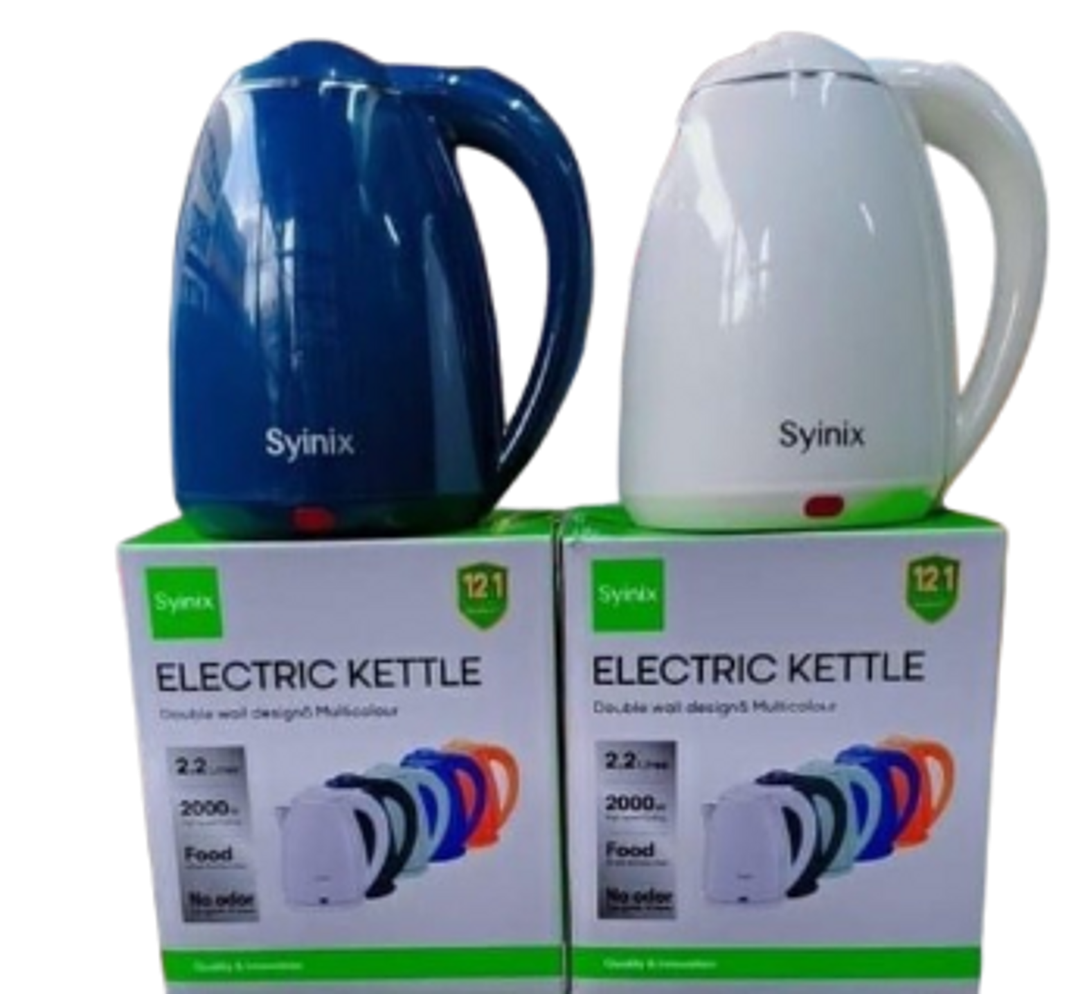 "Upgrade your kitchen with the Syinix Electric Kettle! Fast boiling, 2.2L capacity, 2000W power, and a double-wall design for safe, odor-free use. Available in vibrant colors, perfect for any home!"