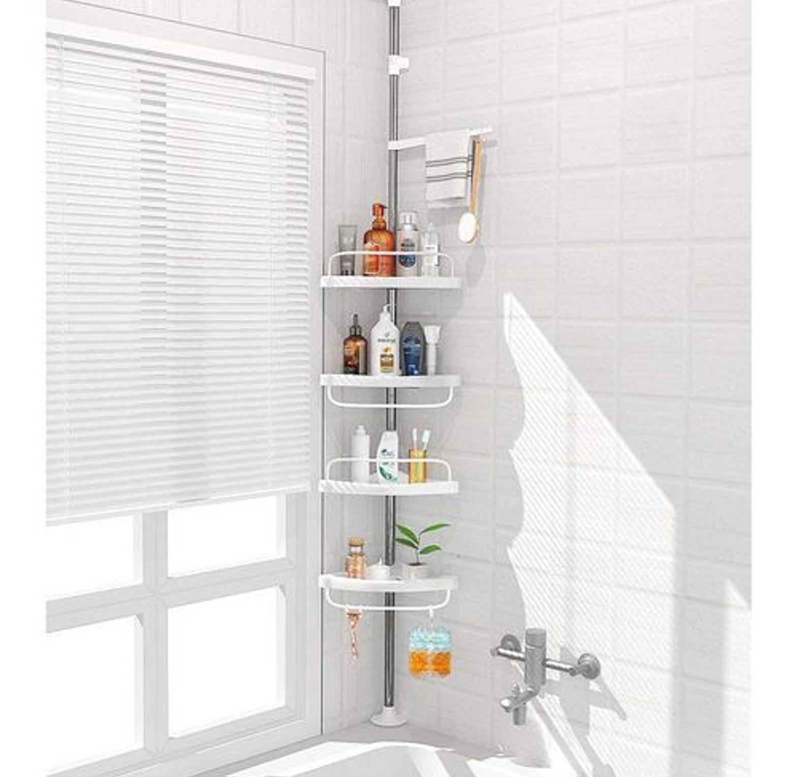 Exquisite Craftmanship The Finest Materials and artisanal workmanship to ensure its durability and longer life. The 4 shelves are made from durable plastic to alleviate rust concerns and the pole is made from stainless steel, making it extremely durable and strong. Large Capacity This white 4 tier tension pole is designed to hold all of your shower and bath essentials, including shampoo, conditioners CORNER STANDING SHOWER CADDY: The shower caddy can use the space in the corner of the bathroom to organize toiletries. Avoid the situation stacking randomly. Keep the bathroom tidy and organized. RUSTPROOF STAINLESS POLE: Both poles and baskets of shower caddy tension pole is made by 304 stainless steel, which can effectively prevent from rusting. It can be installed in bathroom, shower room, bathtub, toilet, kitchen. LARGE STORAGE CAPACITY: Shower caddy has 4 large adjustable shelves, each shelf can storage 2 large 32 oz pump bottles or 4 16oz bottles. Ideal for contain bath supplies like shampoo, conditioner, soap, body wash, towel bar, razor, sponge and more.