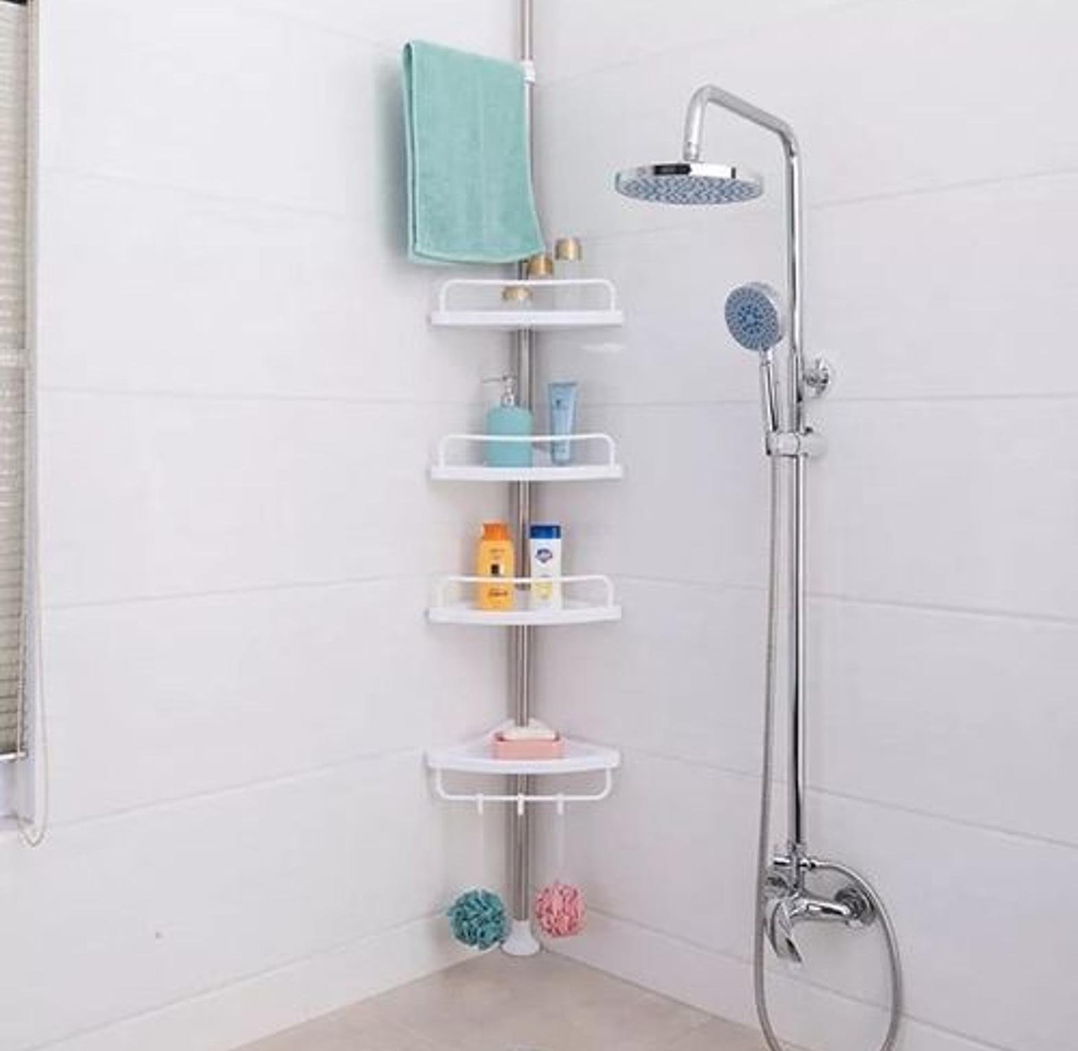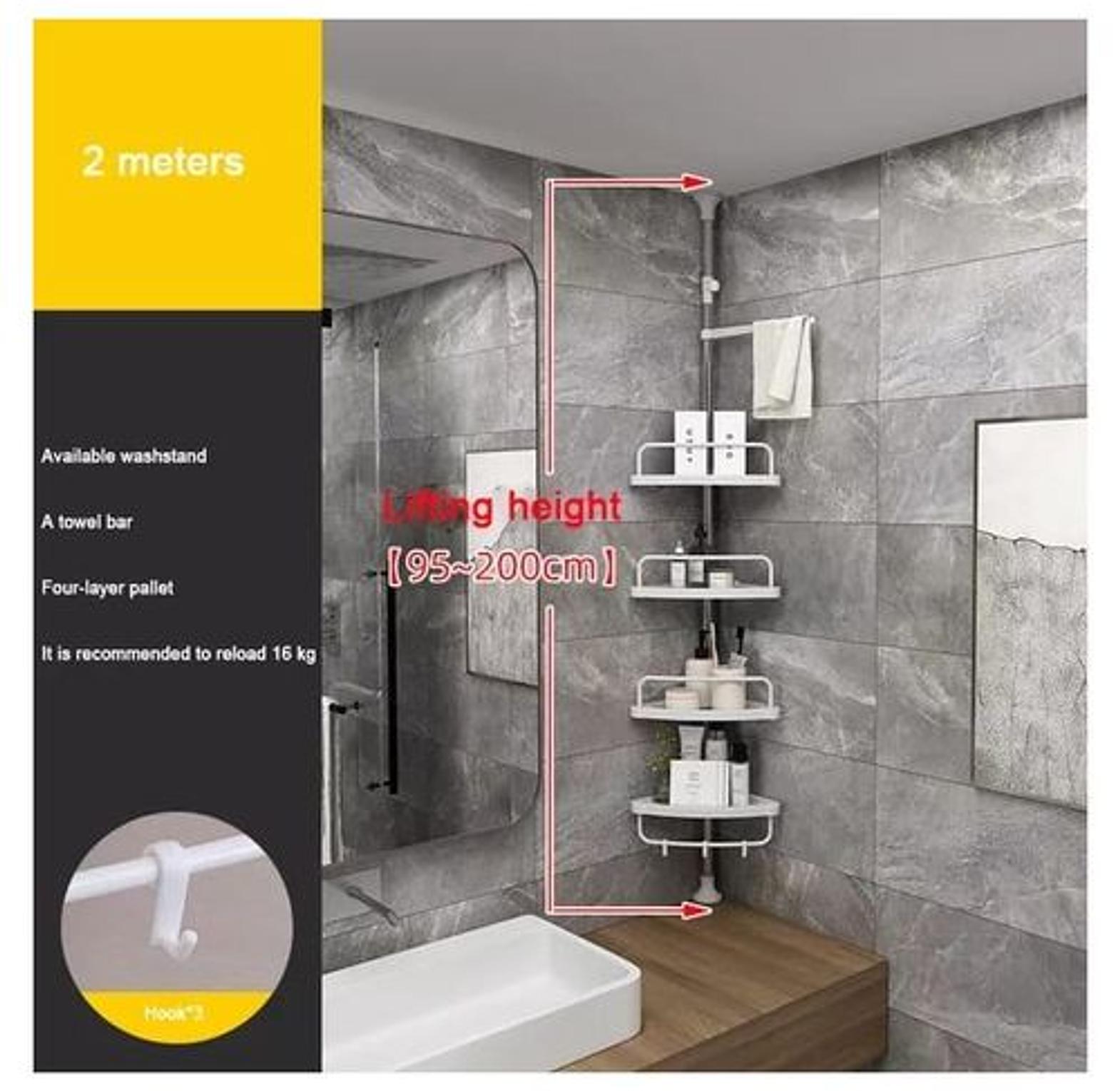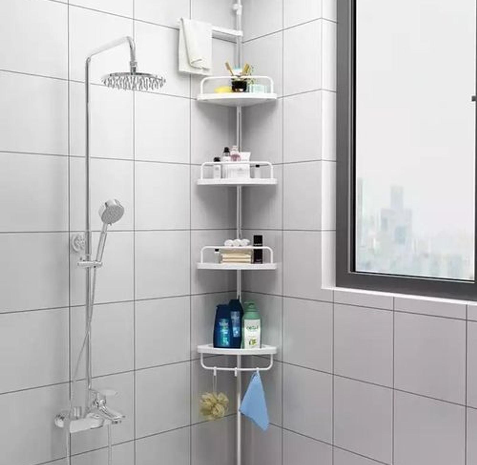 Exquisite Craftmanship The Finest Materials and artisanal workmanship to ensure its durability and longer life. The 4 shelves are made from durable plastic to alleviate rust concerns and the pole is made from stainless steel, making it extremely durable and strong. Large Capacity This white 4 tier tension pole is designed to hold all of your shower and bath essentials, including shampoo, conditioners CORNER STANDING SHOWER CADDY: The shower caddy can use the space in the corner of the bathroom to organize toiletries. Avoid the situation stacking randomly. Keep the bathroom tidy and organized. RUSTPROOF STAINLESS POLE: Both poles and baskets of shower caddy tension pole is made by 304 stainless steel, which can effectively prevent from rusting. It can be installed in bathroom, shower room, bathtub, toilet, kitchen. LARGE STORAGE CAPACITY: Shower caddy has 4 large adjustable shelves, each shelf can storage 2 large 32 oz pump bottles or 4 16oz bottles. Ideal for contain bath supplies like shampoo, conditioner, soap, body wash, towel bar, razor, sponge and more.