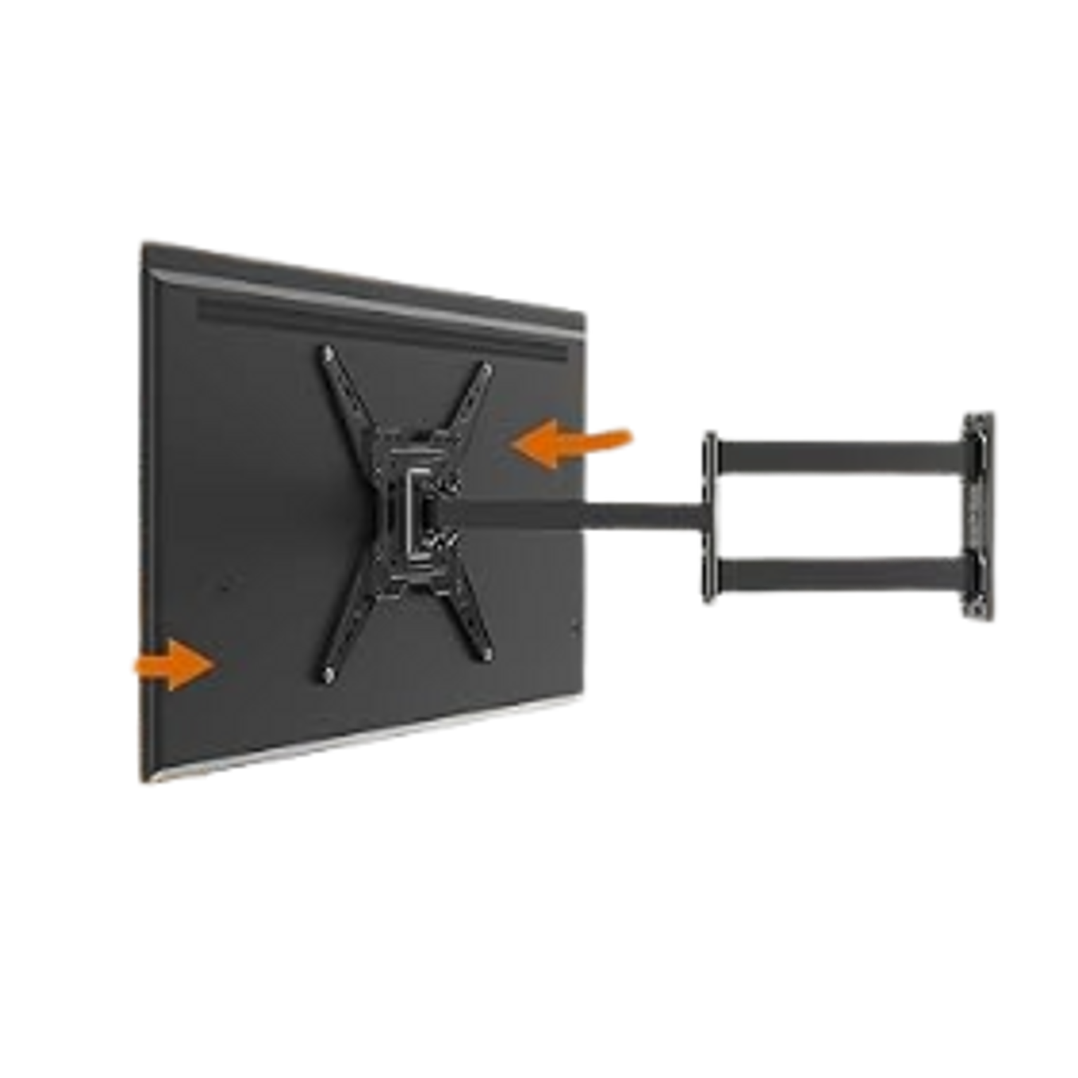This is a full-motion, articulating TV wall mount designed to securely hold a television and allow for a wide range of movement. It is made from solid hinge steel for stability and can be used in various rooms like bedrooms, home gyms, or kitchens.