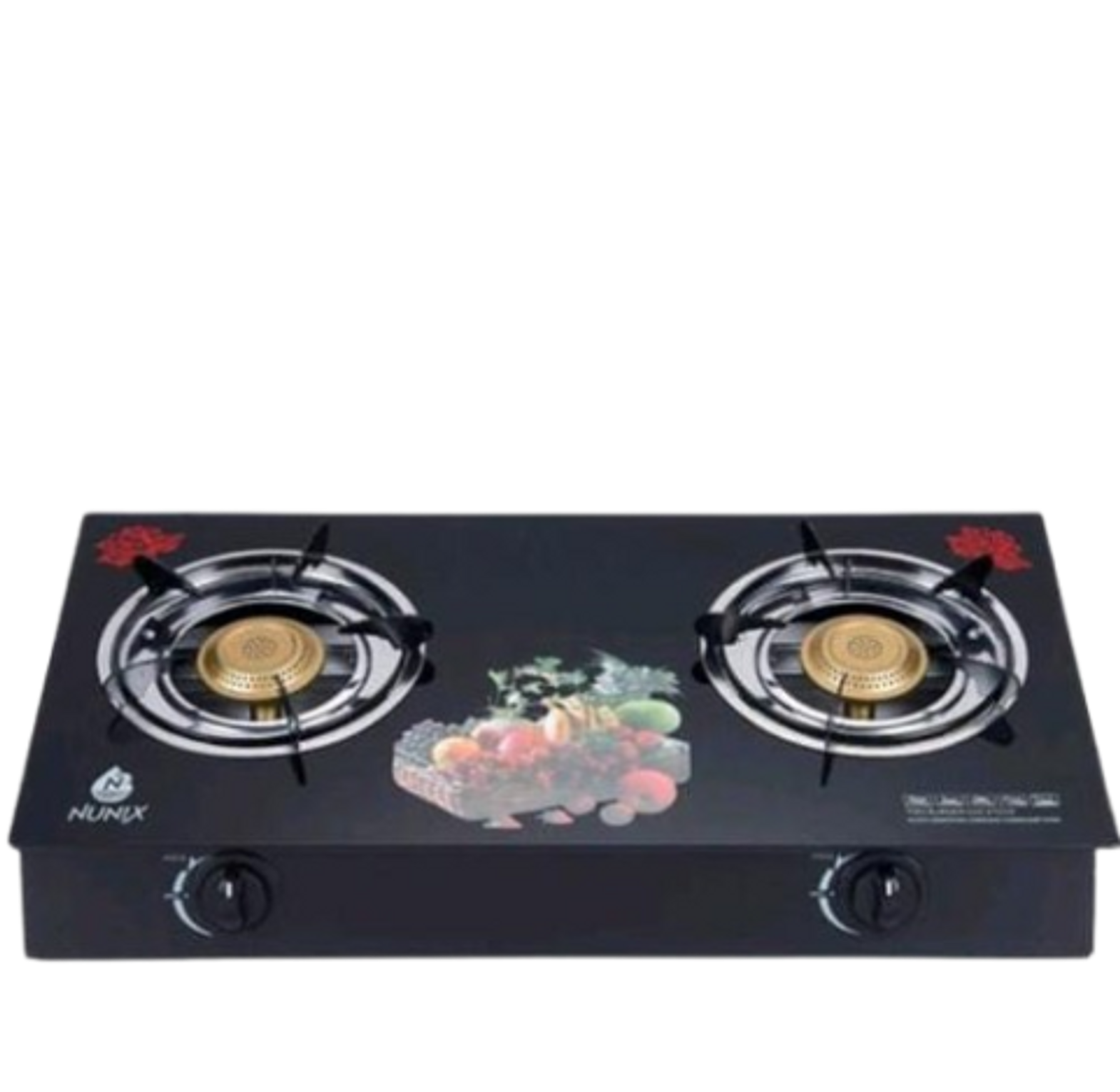 The Nunix GC-004 is a stylish and practical double burner gas cooker designed for convenient cooking. Its sleek glass table top not only adds a modern touch to your kitchen but also makes it easy to clean. This portable gas stove features two independently controlled burners, allowing you to cook multiple dishes simultaneously