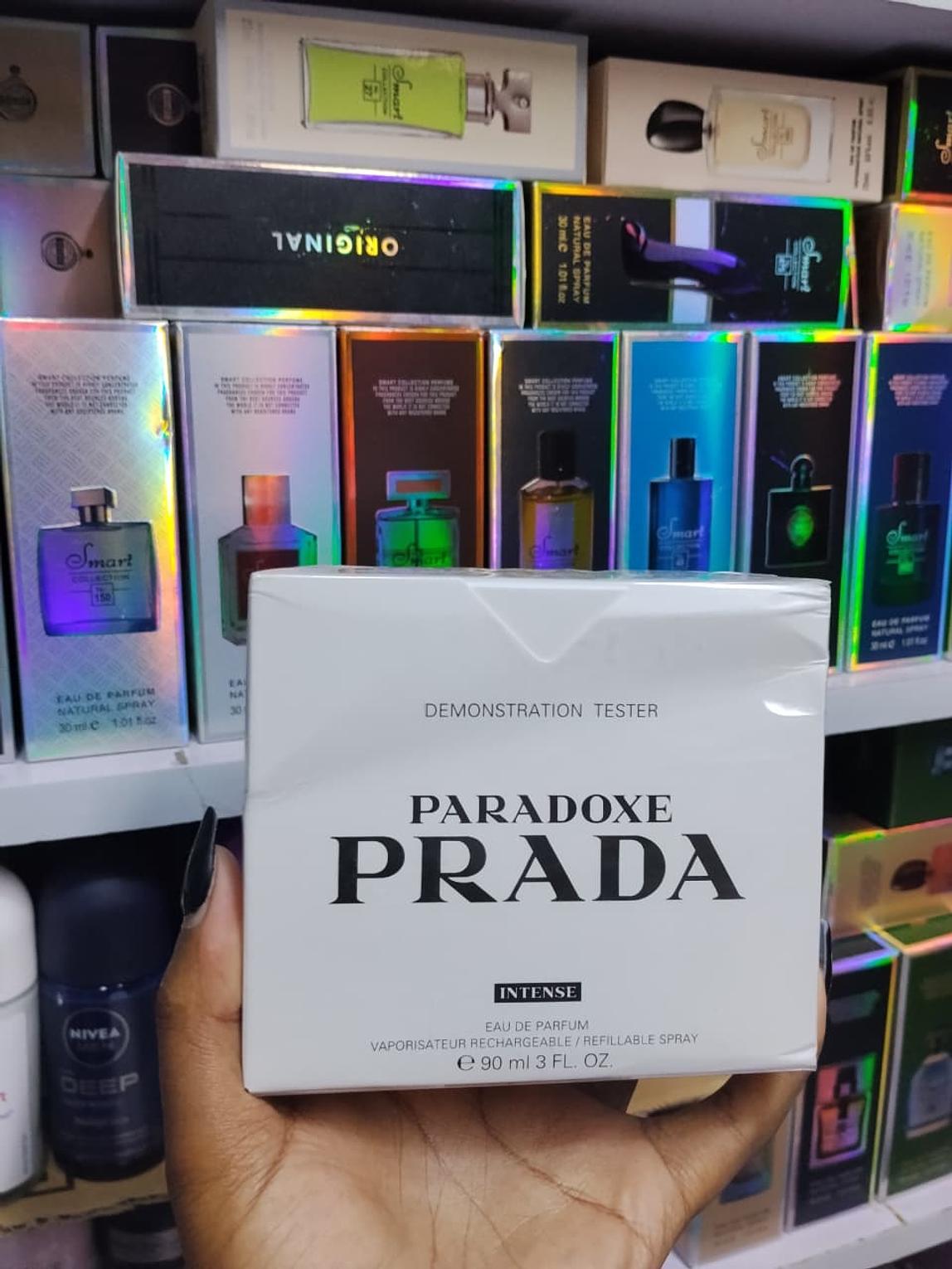 Prada Paradoxe Intense Eau de Parfum is a luxurious and sophisticated fragrance that embodies bold femininity and elegance. This scent is an intensified version of the original Prada Paradoxe, offering a deeper, richer olfactory experience. Fragrance Notes: Top Notes: Bergamot, Pear, Neroli Heart Notes: Jasmine, Orange Blossom, Moss Base Notes: Amber, Vanilla, White Musk This perfume is designed for individuals who appreciate bold yet elegant fragrances with a mix of floral, warm, and musky notes.