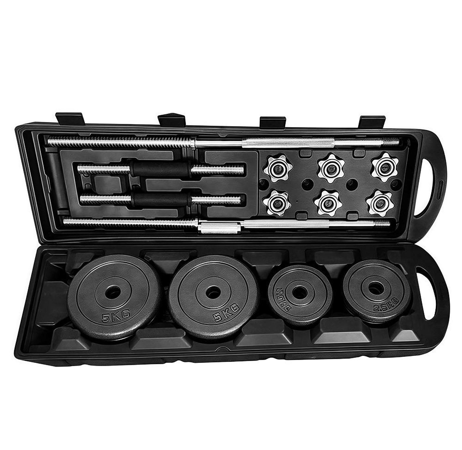 Adjustable Design – Customize your load from light to heavy depending on your workout needs. Durable Build – Made from high-quality cast iron/steel or rubber-coated plates for long-lasting use. Anti-Slip Grip – Textured handles ensure a secure and comfortable grip during intense workouts. Space-Efficient – Replaces multiple fixed-weight dumbbells with one compact, portable set. Versatile Use – Perfect for bicep curls, shoulder presses, chest flies, rows, squats, and more. Material: Cast iron / Rubber-coated iron (based on variant). Bar Length: 14–16 inches. Hole Diameter: 1 inch (standard size). Grip Material: Chrome or knurled rubber. Lock Type: Spinlock or spring collar.